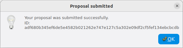Proposal submitted with proposal ID shown#
