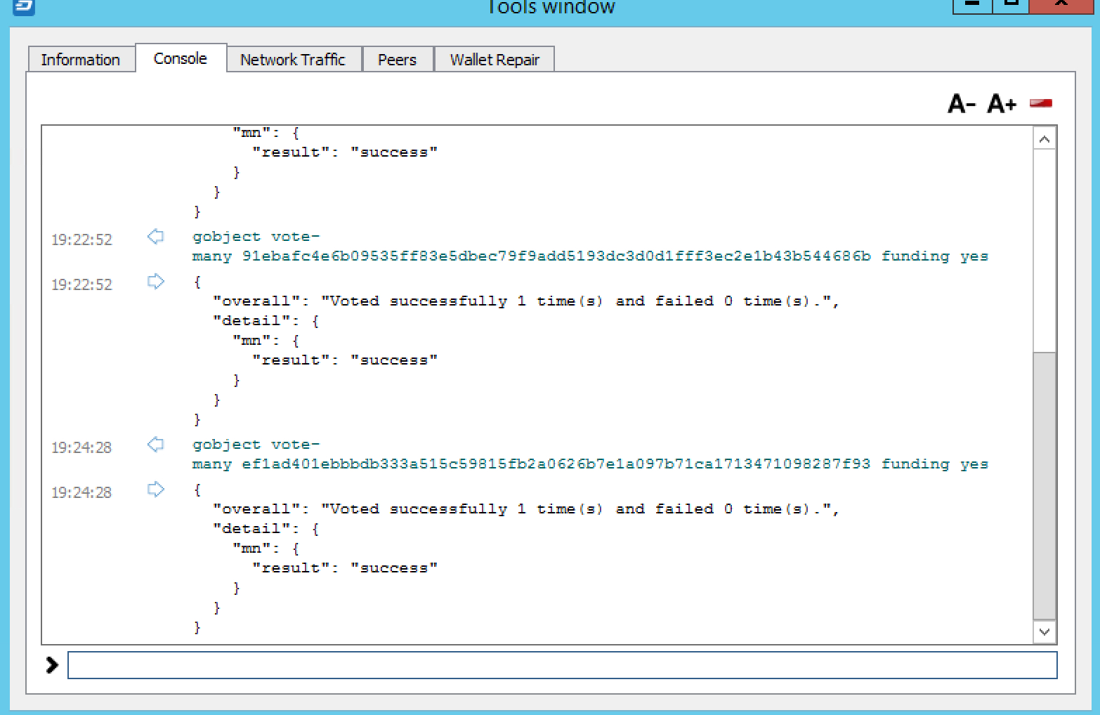 Voting from the debug console in Dash Core Wallet#