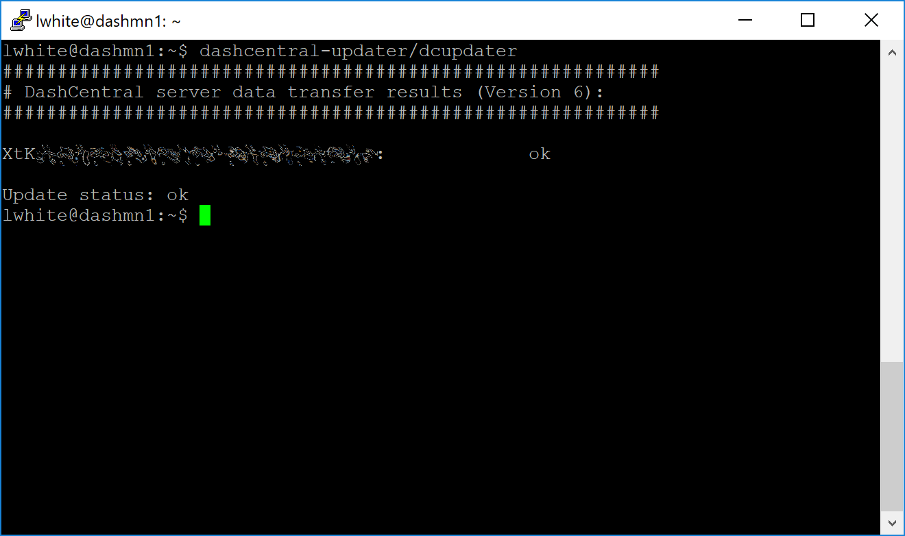 Press Ctrl + X to exit, confirm you want save with Y and press Enter. Test your configuration by running the dashcentral script, then check the website. If it was successful, you will see that an update has been sent: