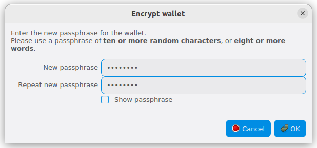 Encrypting the Dash wallet with a password#
