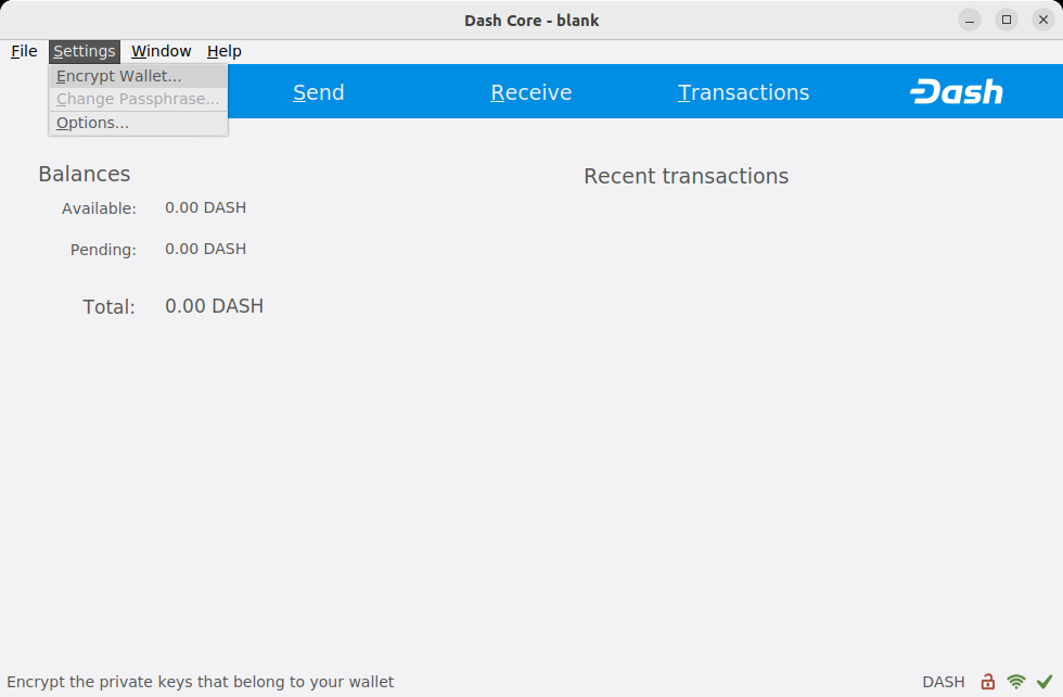 The following section will detail the steps you need to follow if you choose to encrypt your Dash wallet later.