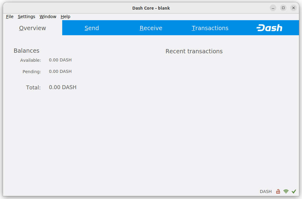During this process, Dash Core will download a full copy of the Dash blockchain from other nodes to your device. Depending on your internet connection, this may take a long time. If you see the message “No block source available”, check your internet connection. When synchronization is complete, you will see a small green tick in the lower right corner.