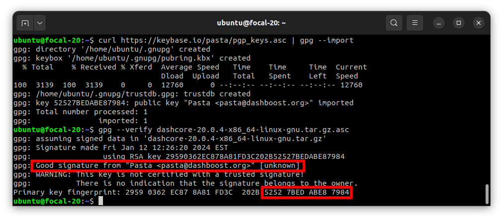 gpg --verify dashcore-23.1.2-x86_64-linux-gnu.tar.gz.asc