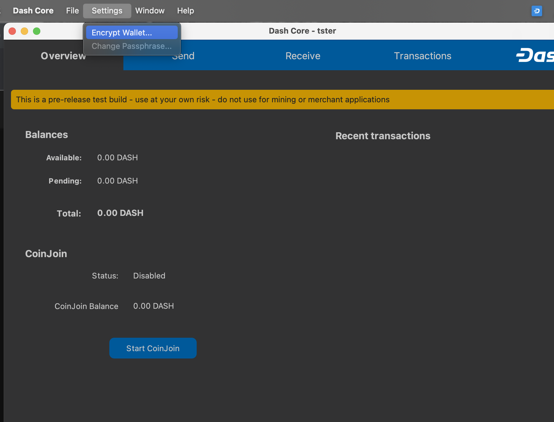 The following section will detail the steps you need to follow if you choose to encrypt your Dash wallet later.
