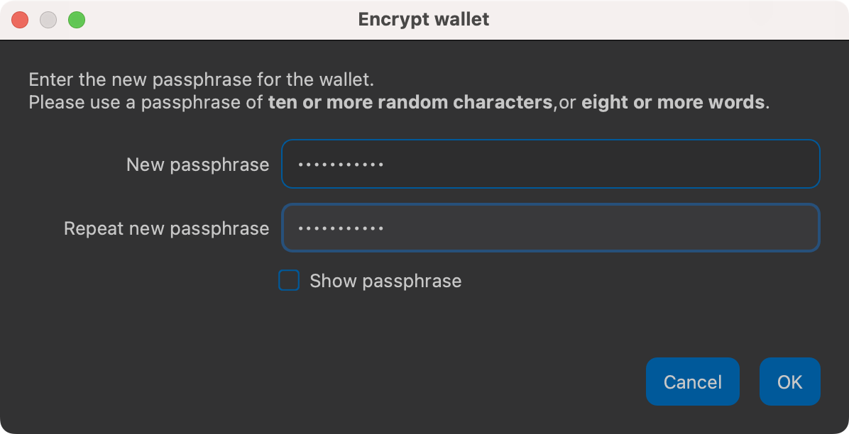 Encrypting the Dash wallet with a password#