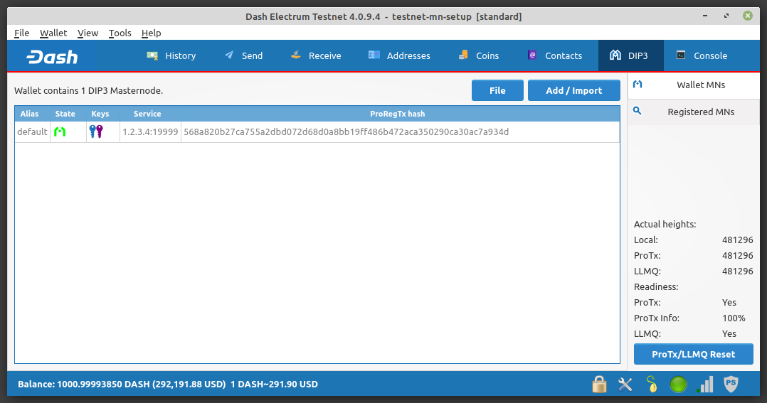 To setup a masternode, navigate to the DIP3 tab and click the Add/Import button.