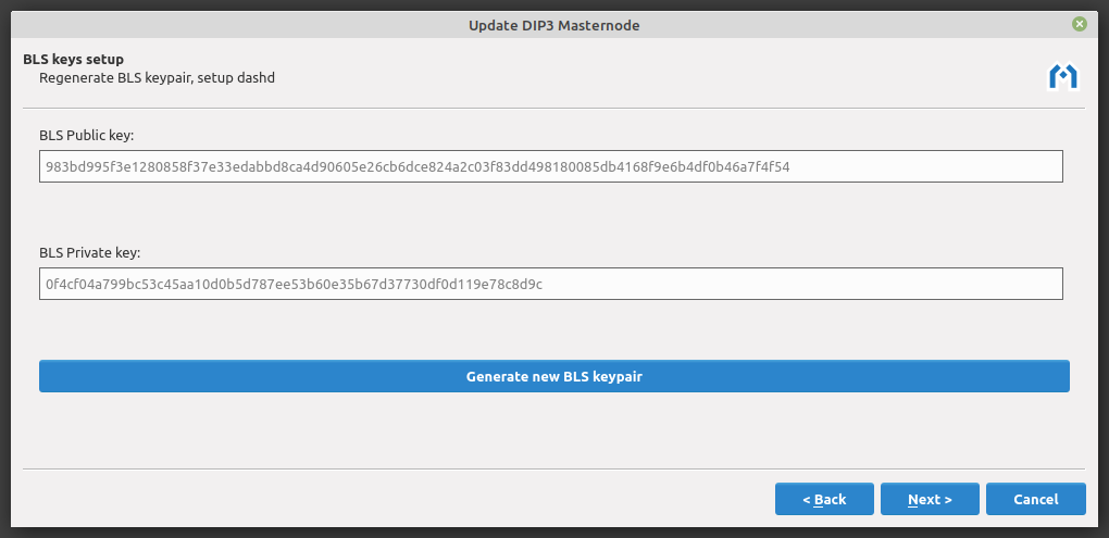 The masternode owner may also update the operator BLS key at any time. Click Next to continue.