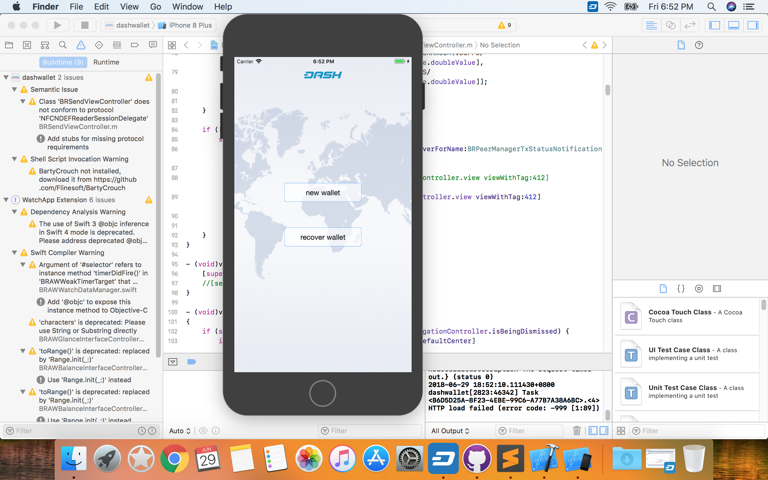 ~/Documents/src/dashwallet/DashWallet.xcodeprojand click Open.Click Product > Run to build and run the app in Simulator.